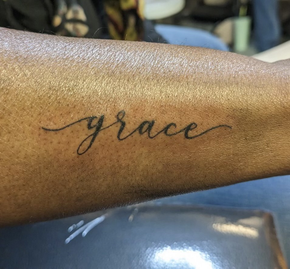 black lettering tattoo